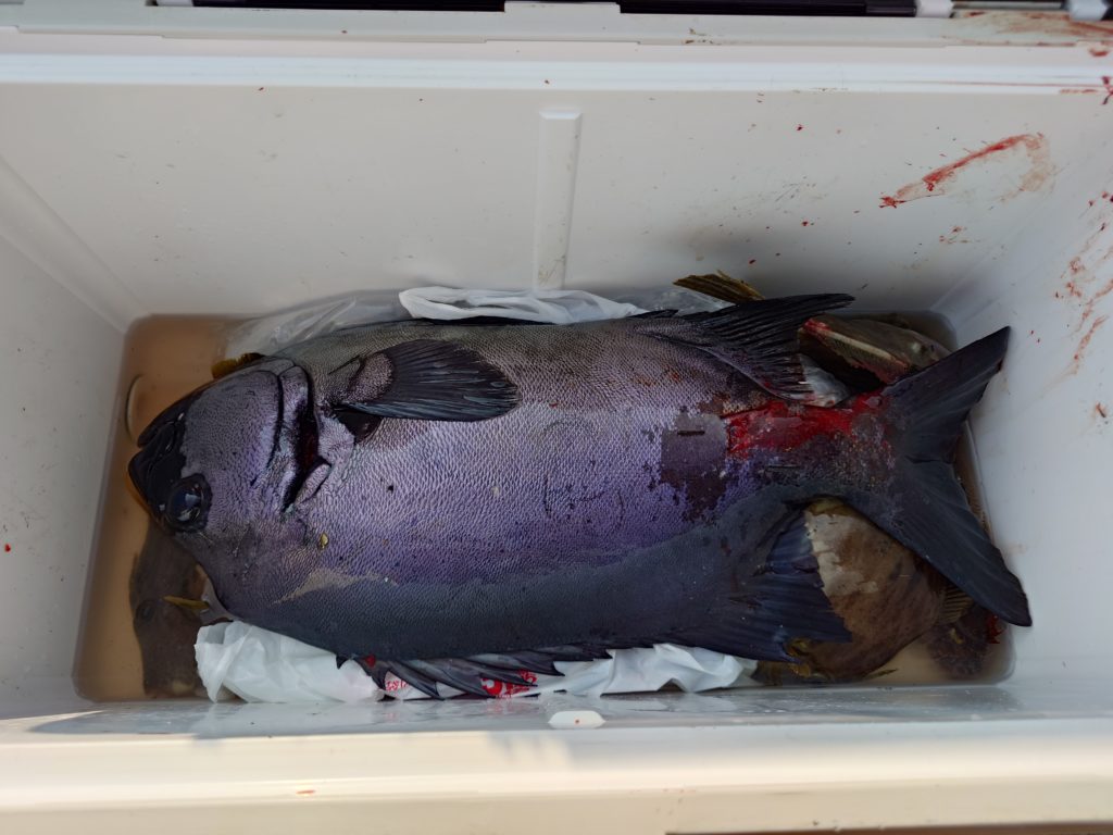 本日の釣果です🐟️石鯛は50㌢オーバーが2枚釣れてました。水温が27度超えてました😥明日、明後日は出船します。
