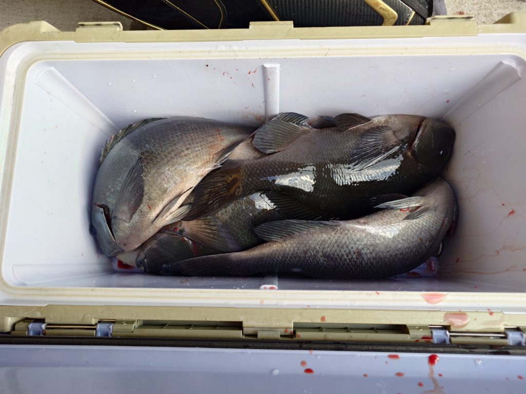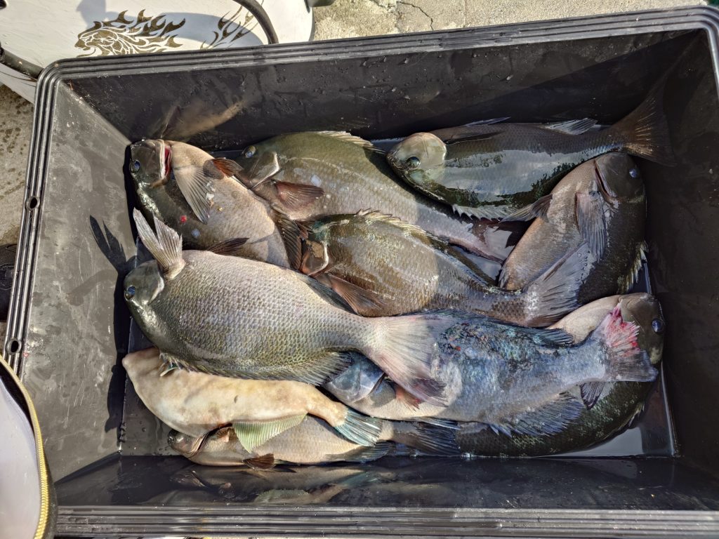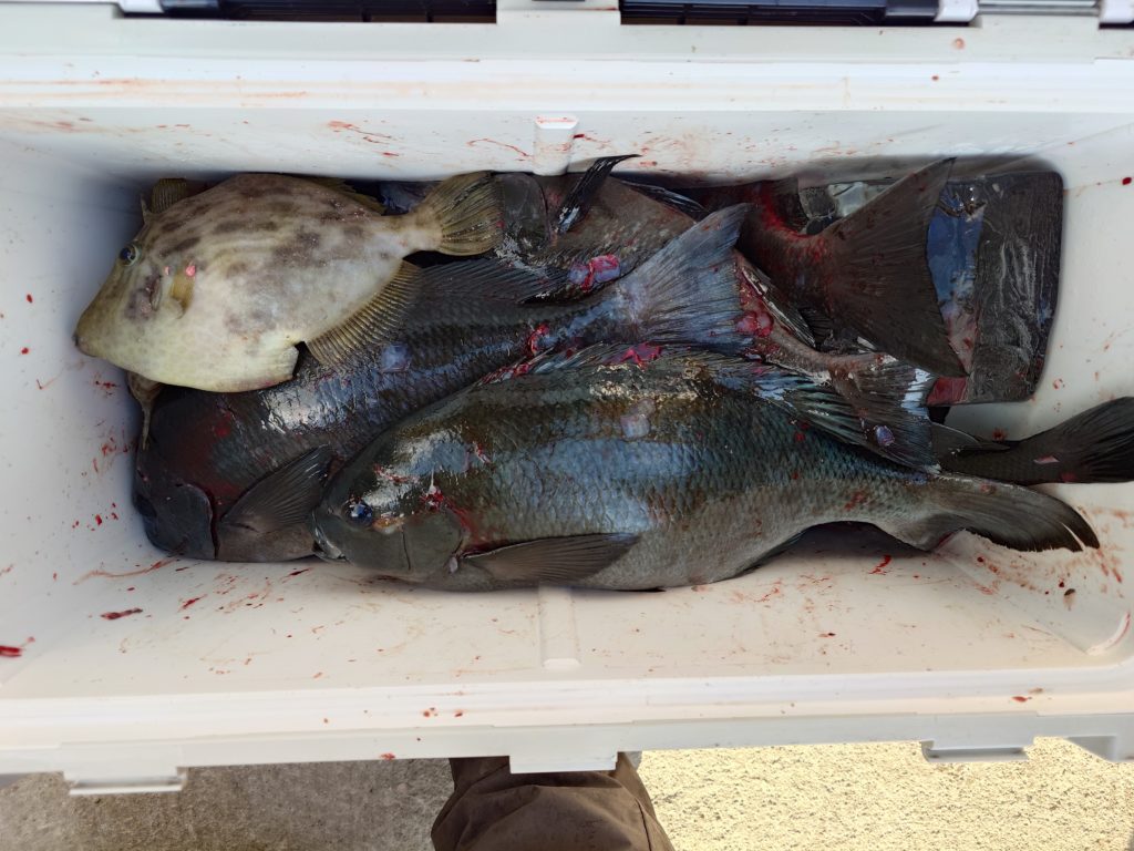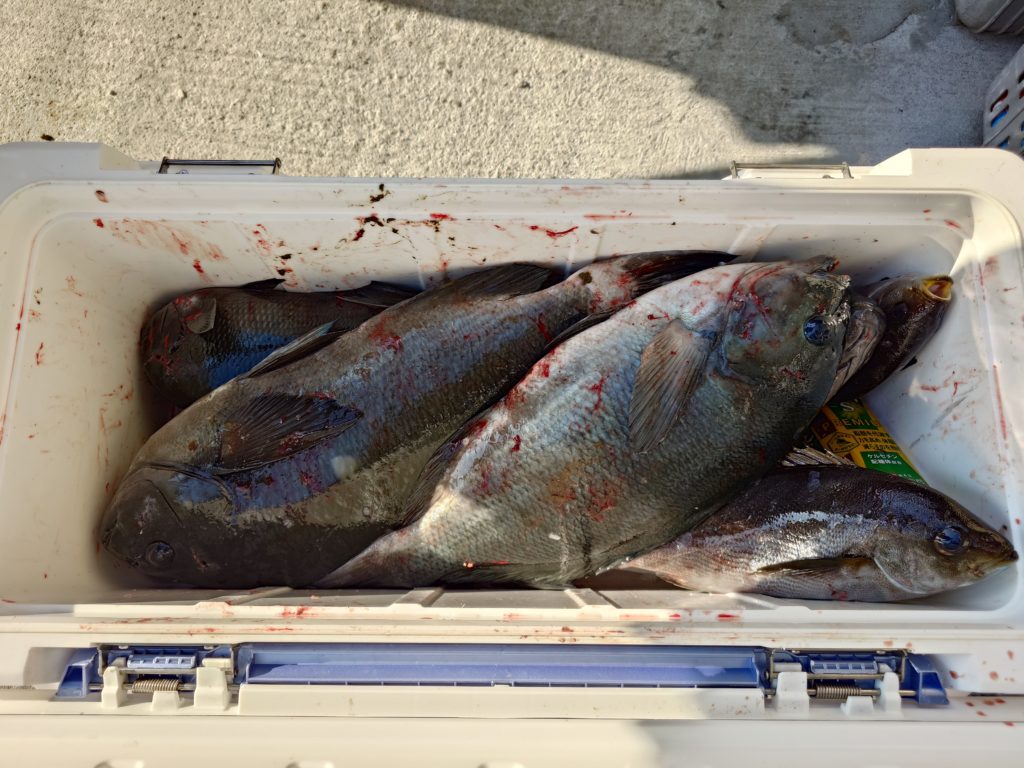 本日の釣果です🐟️少人数での出船でしたが50㌢オーバーのグレ、底物さんはイシガキでした。
