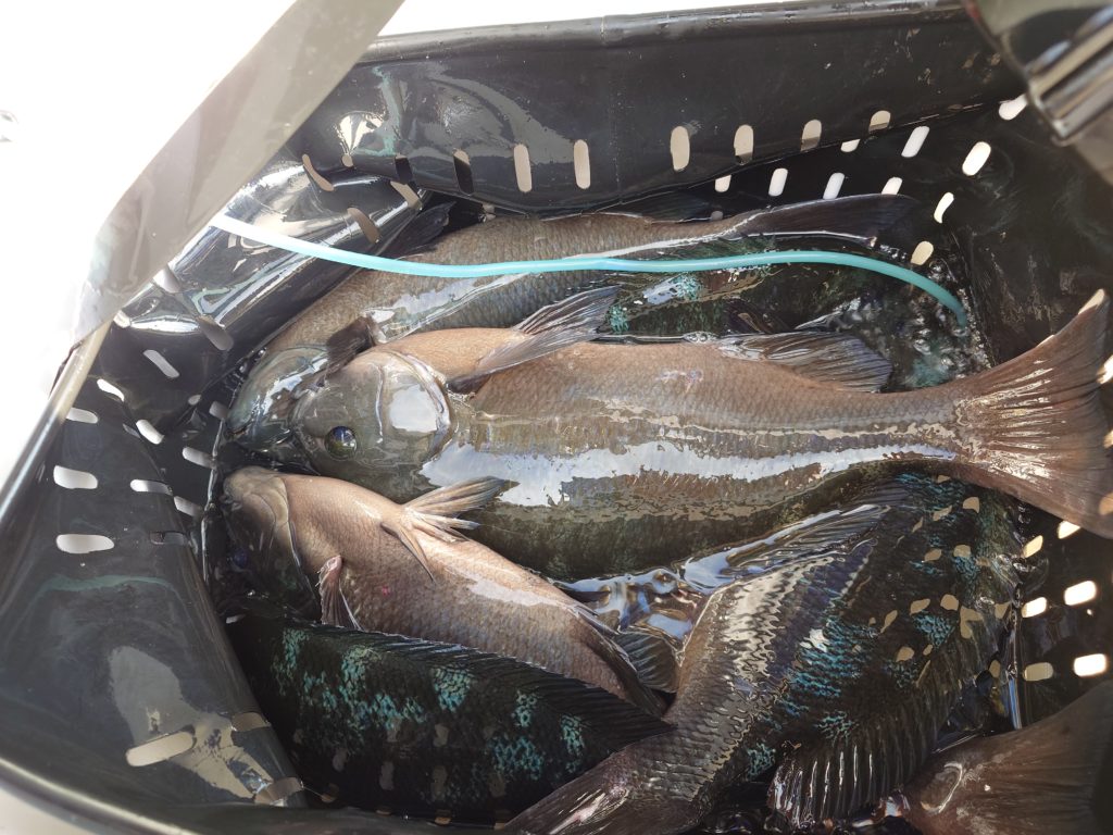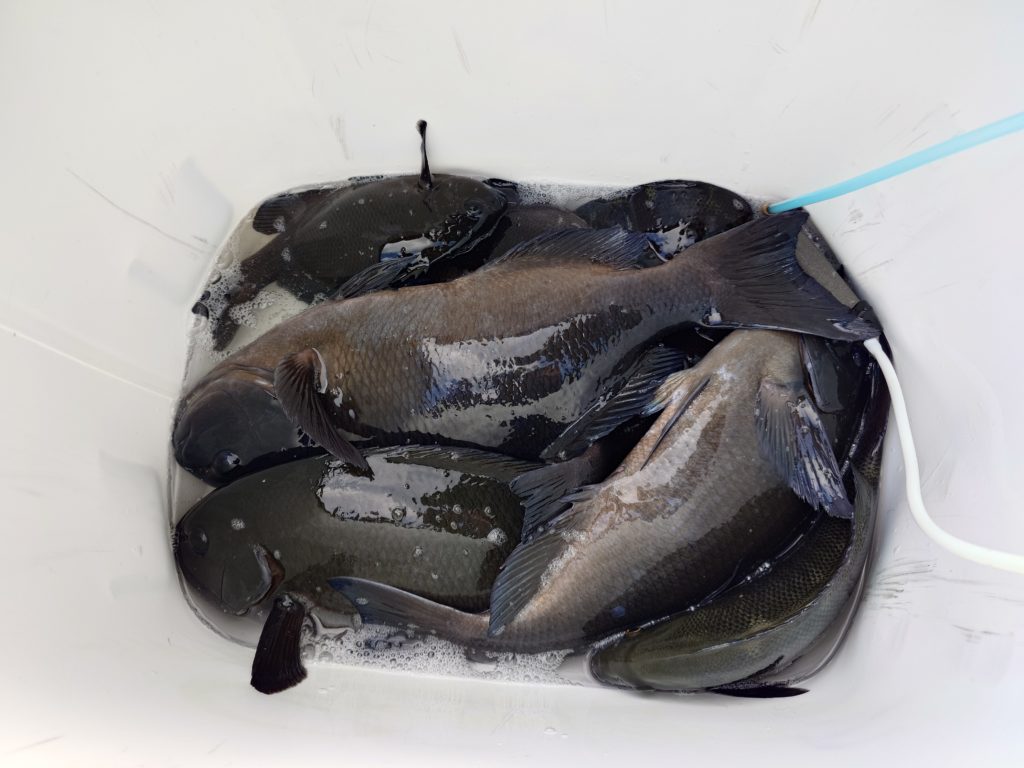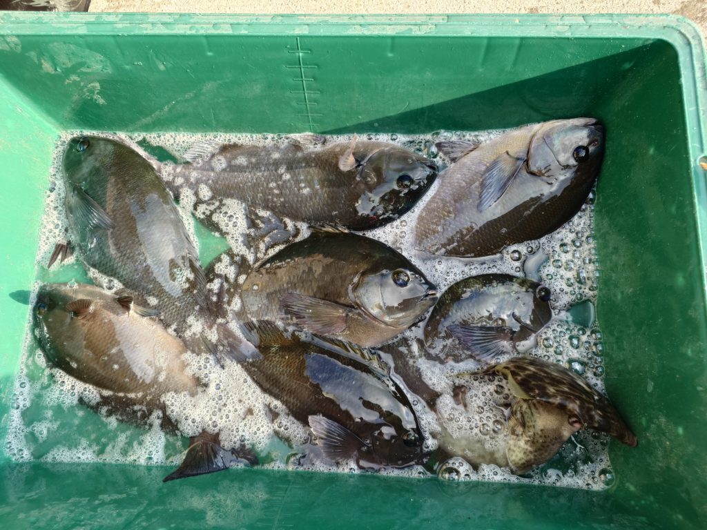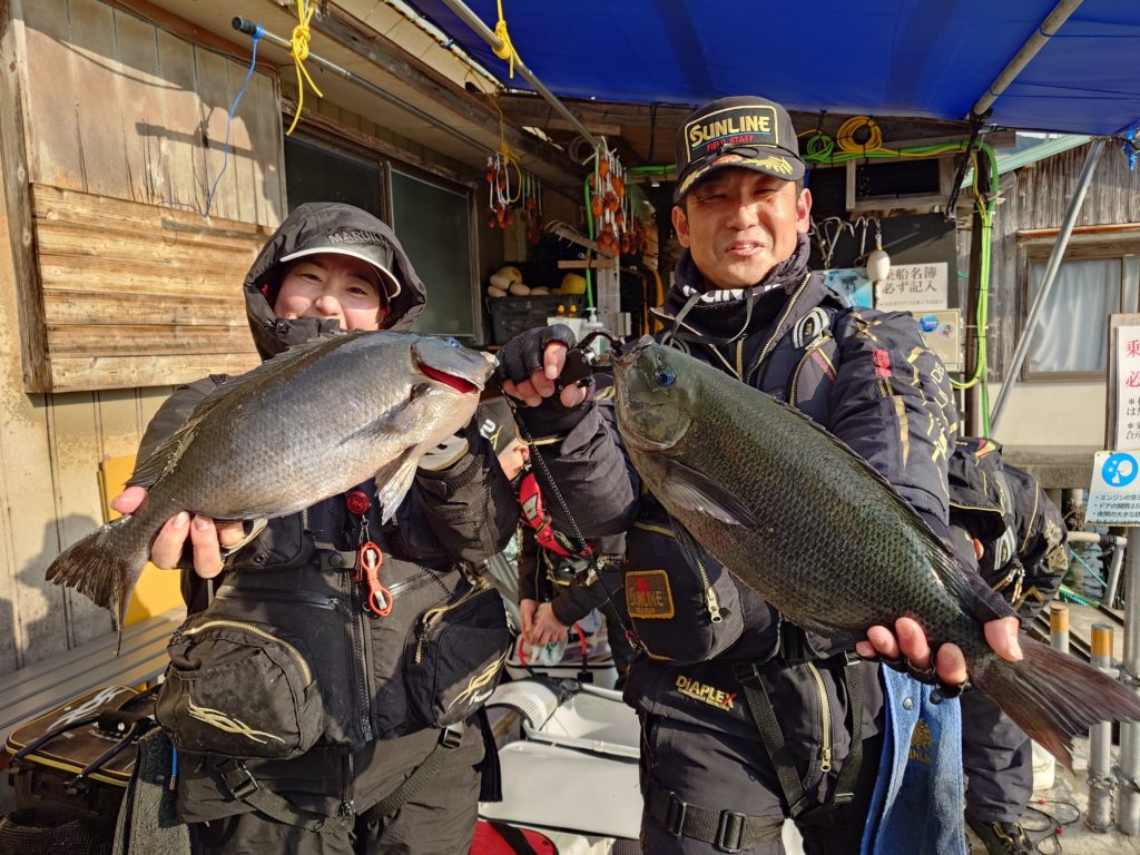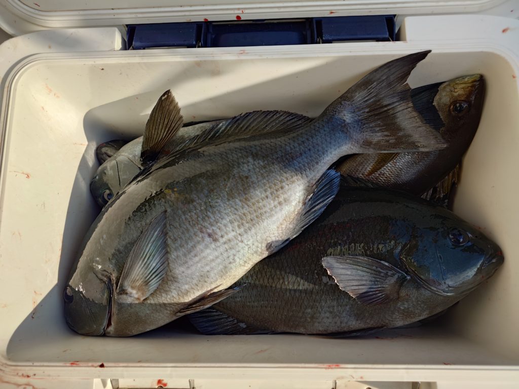 本日の釣果です🐟️少人数での出船でしたが50㌢オーバーのグレ、底物さんはイシガキでした。