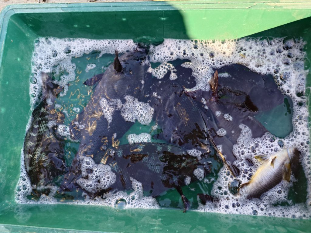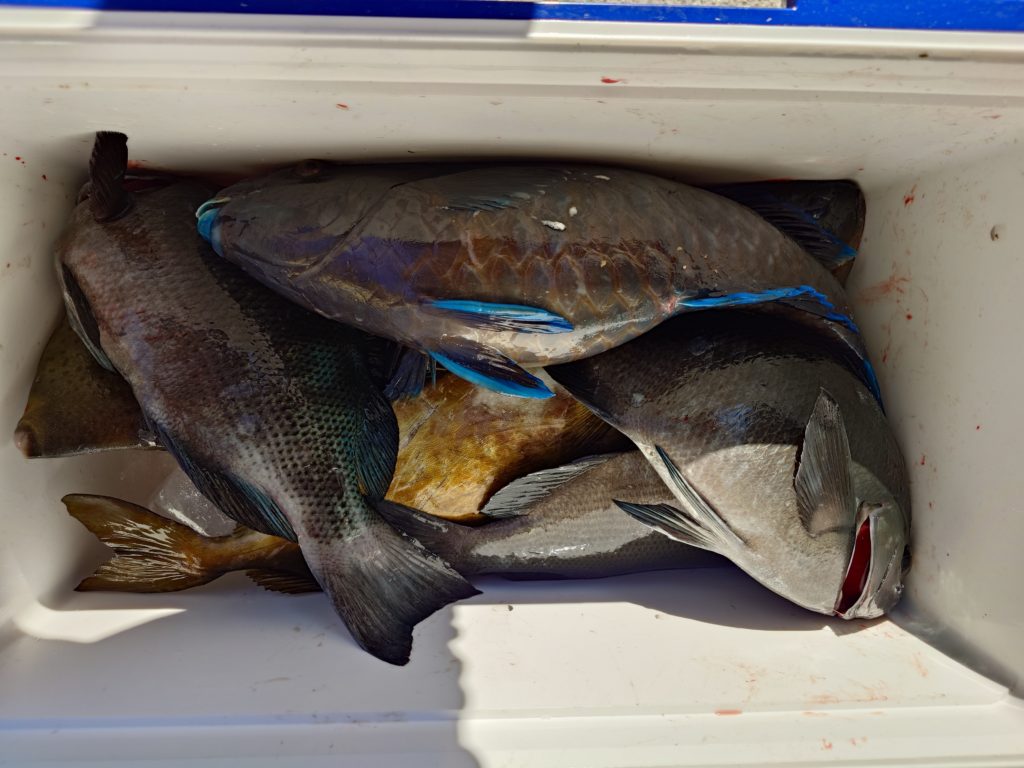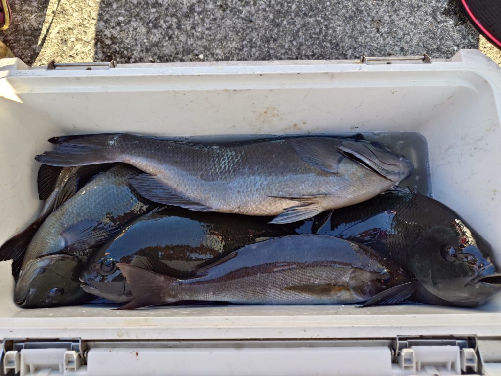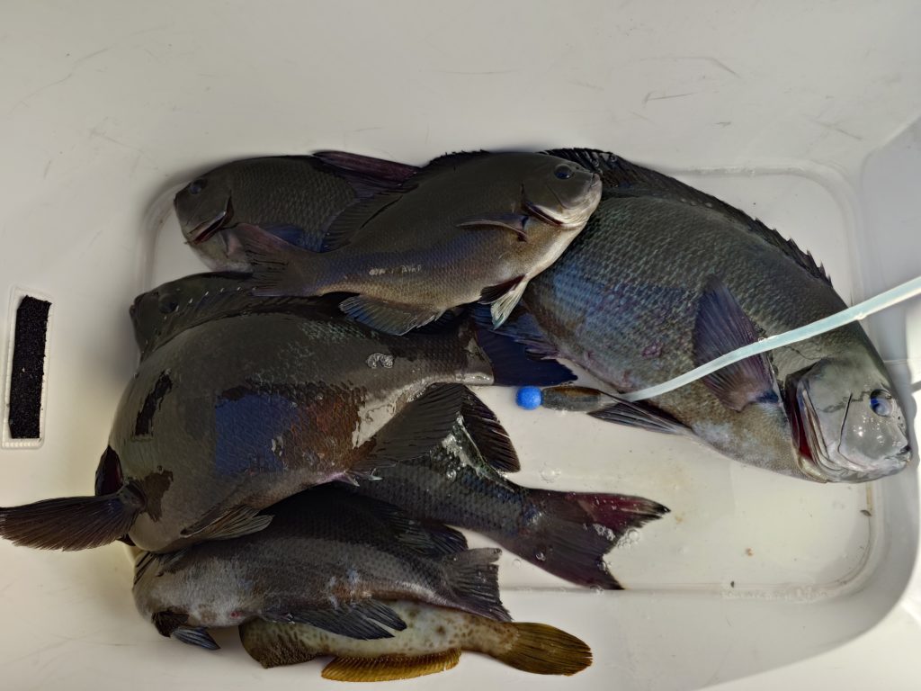 本日の釣果です🐟️少人数での出船でしたが50㌢オーバーのグレ、底物さんはイシガキでした。