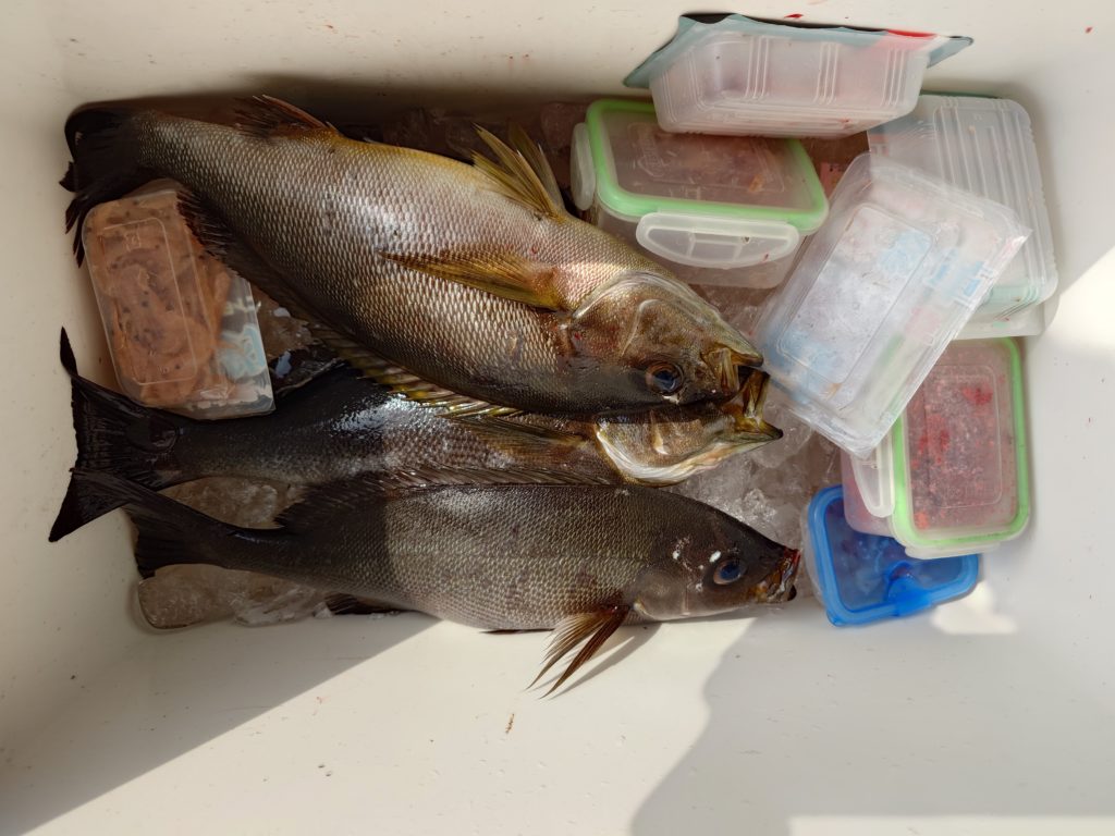 本日の釣果です🐟️他の方はイサキなどでした。水温が18〜19度後半と高いです😥